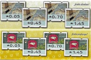 Am 3. Januar2017 kamen neue Automatenmarken heraus: 2 neue Motive die sich im Wechsel auf der Rolle befinden. Thema: „Briefe schreiben“ und „ Briefe empfangen“ (siehe unten) NEUHEITEN – BESCHAFFUNGSDIENST: Michael Kluge, Weststraße 26a, 74906 Bad Rappenau, Tel.: 07264/805371 Fax: 07264/805371 E-mail: markekl@t-online.de
